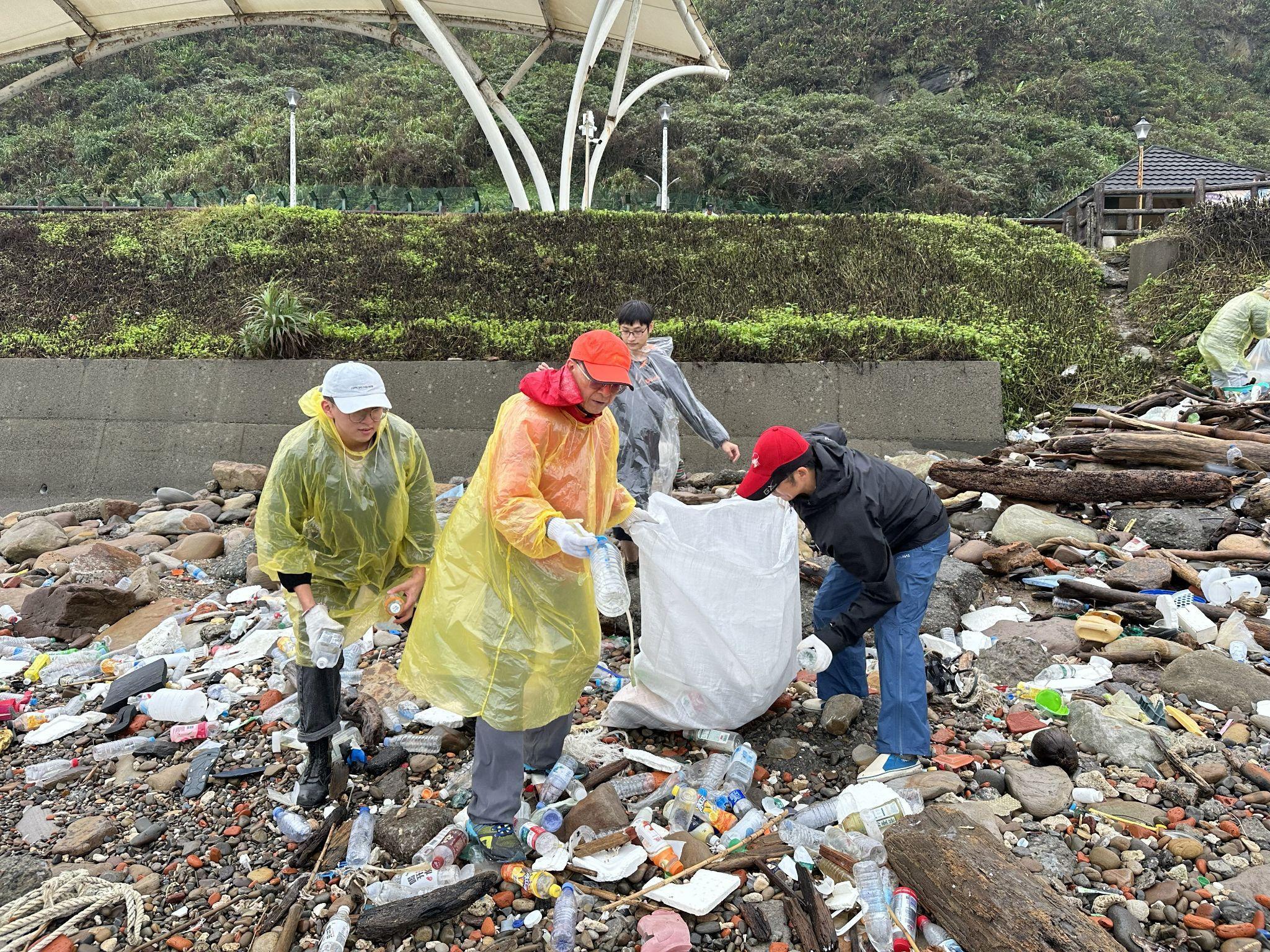 幸運的是,就在我們與在地夥伴「永續海洋外木山工作室」開始進行淨灘說明時,雨勢奇蹟似地停了。在涼爽的天氣中,團隊成員分工合作,成功清運了重達1.1公噸(1116公斤)的驚人成果,這當中包含了大量的塑膠製品、漁網、漁具和保麗龍。仔細地將滿目瘡痍的沙灘恢復成美麗的樣貌。